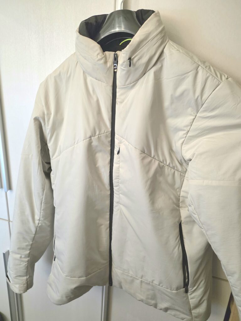 「断熱ジャケット」という名前の通り、自分の体温が外に逃げずにしっかり留まっているような感覚。日の出すぐの1時間程度の通勤時間でも、寒さに苦しむことがなくなりました。むしろ、これを着たまま歩いていると少し暑くなってくるほどの保温力です。