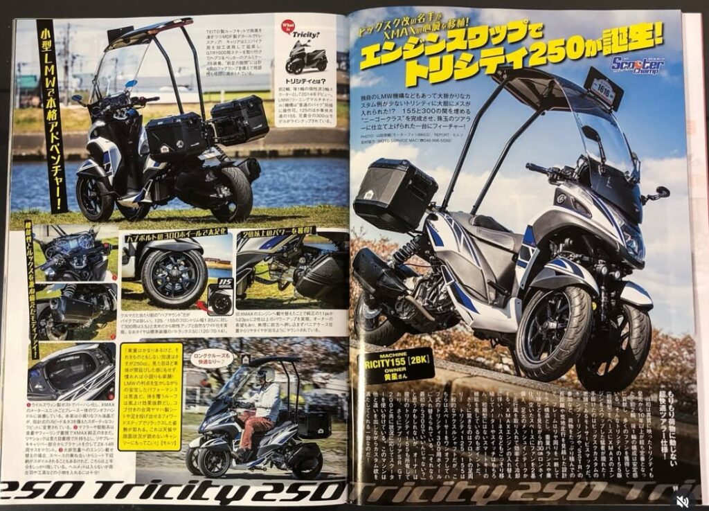 Tricity250を理想のベースとしつつ、Tricity155やXMAX250のコンポーネントを融合させた、まさに「ハイブリッド」な一台。この複数の車種のDNAが組み込まれている点こそが、黄星さんのマシンを唯一無二の存在にしています。