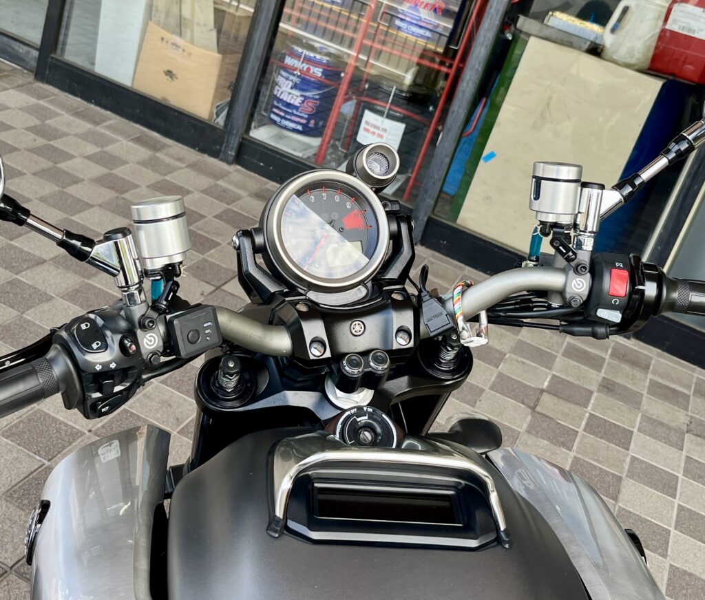 さらに、リザーバータンクをリゾマ(Rizoma)製に統一し、コックピット周りを左右対称に美しく仕上げるという、細部へのこだわりも光ります!