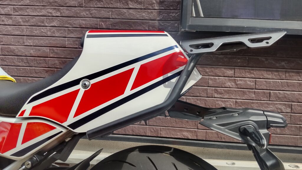 キャリアは車長内に収まっており、車検も問題ないかと思います(僕は、写真の状態のままシングルシートカウルを付けたまま2名乗車で車検を取る自信がありますよ!笑)。