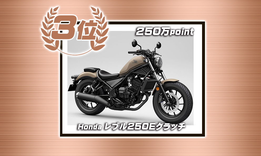 クラシックな佇まいと存在感のあるネイキッドスタイルが支持を集め、堂々の総合1位となりました。大型らしい余裕と、眺めて良し・走って良しの“王道感”が票につながった印象です。